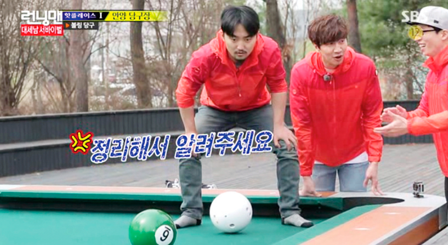룰은 간단하다. 큐볼을 굴려(?) 각 포켓에 공을 넣어라. 규칙은 어느 동네 당구장 포켓볼 룰이라도 OK. 포켓볼 게임을 앞두고 멤버들이 각자의 점수를 밝혔다. 물론 믿거나 말거나지만, 개리는 짜디짠 150, 지석진은 10년째 120, 손호준은 150, 당구 처음 친다는 유병재는 30, 친구들 당구장 갈 때 자기는 데이트했다는 장수원도 30이란다.