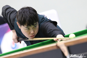 [빌리어즈=양구/김민영 기자] '세계랭킹 1위' 조명우의 벽은 15세 3쿠션 유망주에게 여전히 높았다.김현우(칠보중)는 약 4개월 만에 다시 조명우(서울시청)에 도전했지만, 이번에도 돌파에는 실패하며 4강 문턱에서 멈췄다.22일 오전 10시 강원도 양구군 청춘체육관에서 열린 '제20회 대한체육회장배 2025 전국당구대회' 캐롬 3쿠션 남자부 개인전 8강전에서 조명우는18이닝에 50:28로 김현우를 제압하고 가장 먼저 준결승에 진출했다. 이로써 대회 우승 도전에 청신호를 켰다.반면, 조명우를 상대로 설욕을 노린 김현우는 하이런 8점을