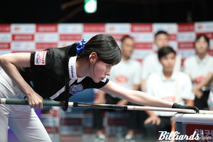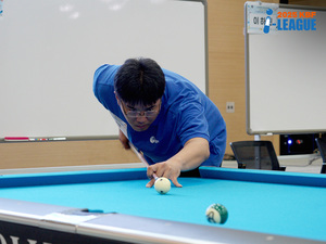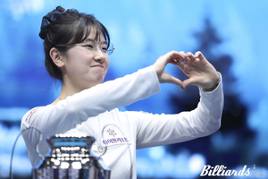 [빌리어즈앤스포츠=고양/이용휘 기자] 18일 '웰컴저축은행 PBA 팀리그 2025-26' 2라운드 2일차에 하림과 우리금융캐피탈이 두 번째 경기를 가졌다. 전날 2라운드 1일차 대결에서 하이원리조트를 상대로 세트스코어 4-3의 승리를 거둔 우리금융캐피탈은 이날 하림을 4-1로 물리치고 승점 3을 추가해 총 승점 5를 벌었다. 사진은 4세트 혼합복식에 출전한 우리금융캐피탈의 서한솔이 샷을 준비하고 있다. (사진=고양/이용휘 기자)