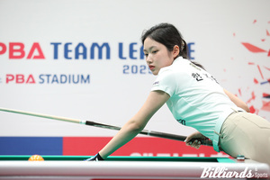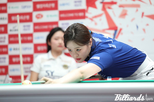 [빌리어즈앤스포츠=고양/이용휘 기자] 18일 '웰컴저축은행 PBA 팀리그 2025-26' 2라운드 2일차에 PBA 라운지에서 NH농협카드 NHpay와 에스와이 빌더스가 만났다. 전날 2라운드 1일차 대결에서 휴온스와 크라운해태에게 1패씩을 안고 출발한 에스와이와 NH농협카드는 1승을 차지하기 위한 치열한 접전을 벌였다. 사진은 에스와이 빌더스의 한지은. (사진=고양/이용휘 기자)