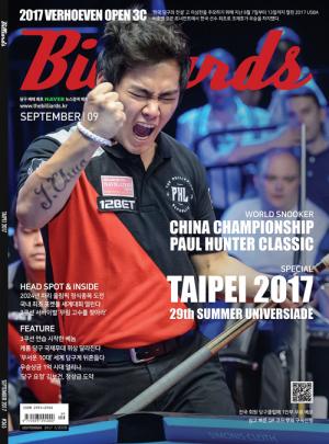 국내 유일 당구전문지 2017년 9월호가 발행되었다. 이번 호에는 '2017 타이베이 유니버시아드 대회'와 월드 스누커 프로당구 투어 '2017 에버그란데 차이나 챔피언십', '2017 폴 헌터 클래식' 등의 대회를 리포트했다. 세계스포츠당구연맹(WCBS)가 2024년 파리 올림픽에 정식종목 도전하기 위해 조직을 새롭게 정비한 것과 오는 10월 한국에서 사상 최초로 개최되는 '2017 구리 세계포켓9볼챔피언십' 소식 등에 대해 보도했다. 그밖에 미국에서 열렸던 버호벤 오픈, 대한당구연맹회장배 등이 실렸다.