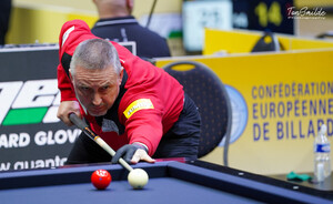 [빌리어즈앤스포츠=성지안 기자] 새해부터 벌어진 3쿠션 빅매치에서 프레데리크 쿠드롱(벨기에)이 애버리지 4.000의 맹타를 휘둘렀다.상대는 '3쿠션 사대천왕'으로 쿠드롱과 함께 오랜 시간 명성을 떨치고 있는 토브욘 블롬달(스웨덴). 쿠드롱은 블롬달과 벌인 맞대결에서 완승을 거두며 기분 좋게 올해 첫발을 떼었다.두 선수는 지난 12일(헌지시각) 네덜란드 틸뷔르흐에서 열린 'KNBB 코줌리그' 12라운드 경기 팀바벨츠와 큐스앤다트/익스트림의 대결에서 맞붙었다.이 경기에서 쿠드롱은 10이닝 만에 40:27로 애버리지 4.000을 기록하며
