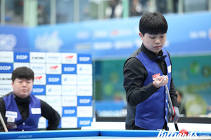 [빌리어즈=양구/김민영 기자] '세계랭킹 1위' 조명우의 벽은 15세 3쿠션 유망주에게 여전히 높았다.김현우(칠보중)는 약 4개월 만에 다시 조명우(서울시청)에 도전했지만, 이번에도 돌파에는 실패하며 4강 문턱에서 멈췄다.22일 오전 10시 강원도 양구군 청춘체육관에서 열린 '제20회 대한체육회장배 2025 전국당구대회' 캐롬 3쿠션 남자부 개인전 8강전에서 조명우는18이닝에 50:28로 김현우를 제압하고 가장 먼저 준결승에 진출했다. 이로써 대회 우승 도전에 청신호를 켰다.반면, 조명우를 상대로 설욕을 노린 김현우는 하이런 8점을