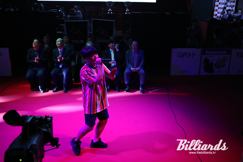 [빌리어즈=김민영 기자] 프로당구 투어 3차전 '웰컴저축은행 웰뱅 PBA 챔피언십' 개회식에 래퍼 지 시카(G Seekah)가 참석해 PBA 테마곡인 'Welcome to PBA'를 열창했다.