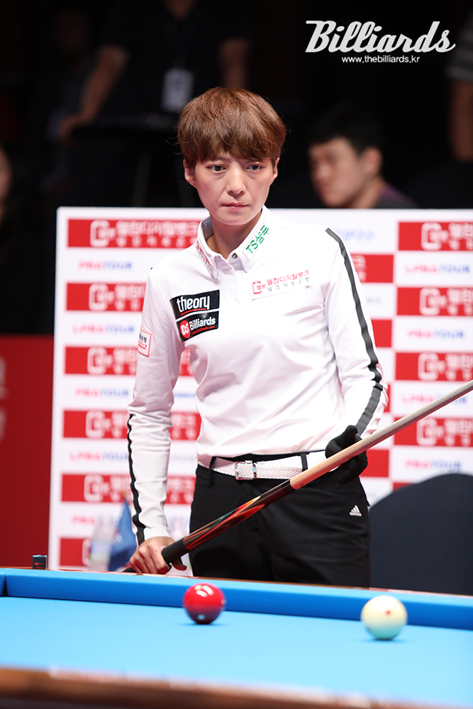 [빌리어즈=김민영 기자] 여자 프로당구 투어 2차전에 이어 3차전 '웰컴저축은행 웰뱅 LPBA 챔피언십' 결승전에 오른 임정숙이 일본의 하야시 나미코와 경기를 치르고 있다.