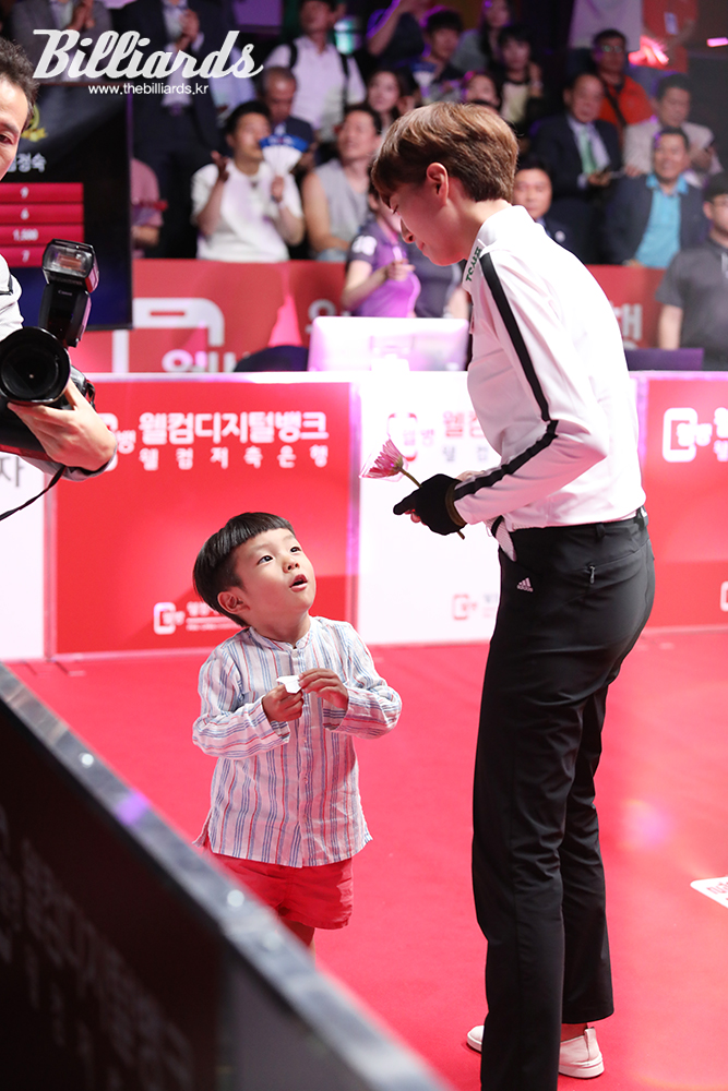 [빌리어즈=김민영 기자] '웰컴저축은행 웰뱅 LPBA 챔피언십' 결승전 후 카메라에 사인하는 임정숙에게 다가온 아들 연우 군이 엄마의 우승을 축하하고 있다.