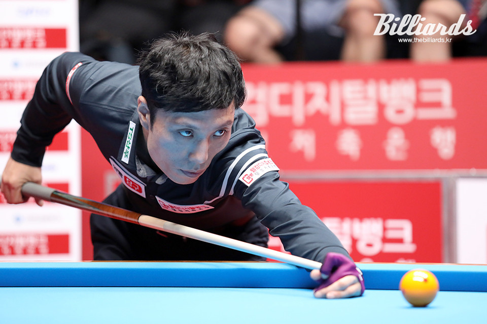 [빌리어즈=김민영 기자] 프로당구 투어 3차전 '웰컴저축은행 웰뱅 PBA 챔피언십' 결승전에서 최원준이 샷을 하고 있다.