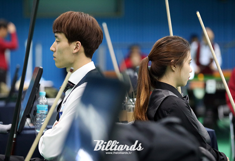 [빌리어즈=김민영 기자] '제15회 대한체육회장배 2019 전국당구대회'의 10볼 남녀 개인전에 출전한 권호준과 김정현이 각각 하민욱과 한소예를 세트스코어 9-7, 8-6으로 꺾고 준결승에 올랐다.