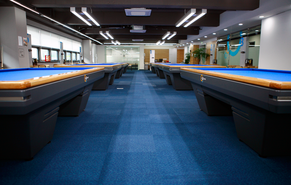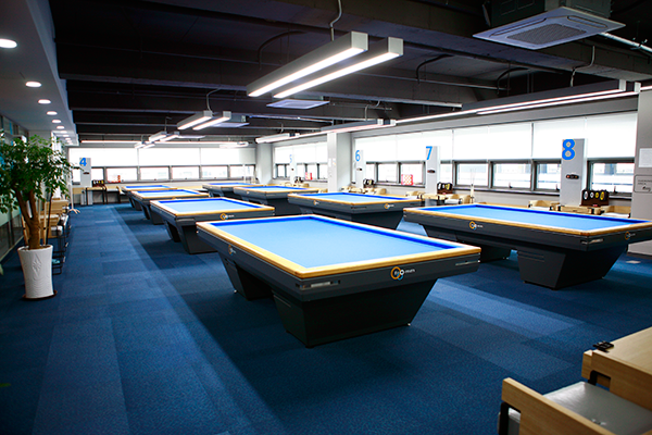 당구대는 '프롬(FROMM)’의 2016년 신형 국제식대대 8대가 설치되어 있다.