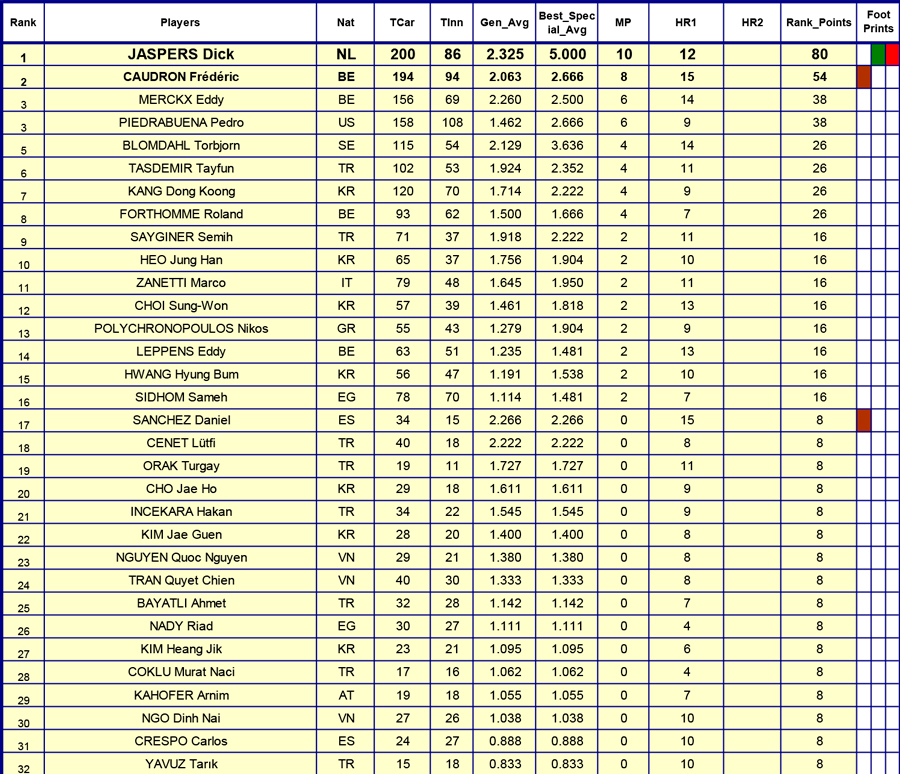 19이닝에서 야스퍼스가 먼저 40점 고지에 올라 점수는 40:34가 되었고 쿠드롱이 후구에 나섰지만, 초구를 놓치면서 경기는 그대로 마무리되었다.