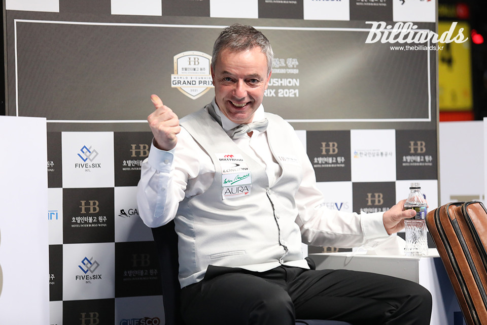 [빌리어즈=원주/김민영 기자] 세계 랭킹 1위의 딕 야스퍼스가 영원한 라이벌인 토브욘 블롬달을 8강전서 세트스코어 2-0으로 꺾고 1위로 플레이오프 진출을 확정 지었다.