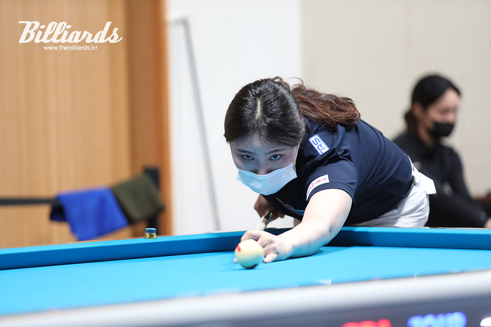 [빌리어즈=김탁 기자] '블루원리조트 PBA-LPBA 챔피언십' 예선 PQ라운드에 출전한 강지은(크라운해태)이 매서운 눈빛으로 공을 노려보고 있다.