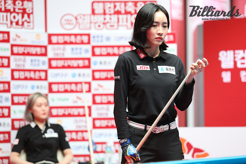[빌리어즈=이용휘 기자] 최혜미(휴온스)가 '웰컴저축은행 웰뱅 PBA-LPBA 챔피언십' 8강전에서 김보미(신한금융투자)와 준결승 진출을 놓고 맞대결을 벌였다.