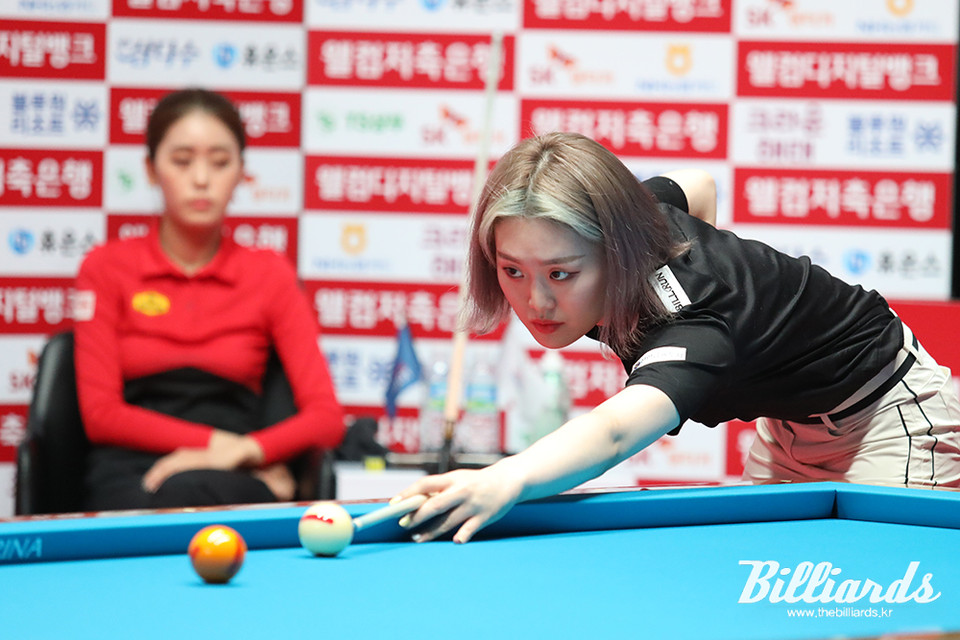 [빌리어즈=김민영 기자] '웰컴저축은행 웰뱅 PBA-LPBA 챔피언십' 준결승전에서 한 지붕 아래 동거 중인 김보미(신한금융투자)와 최지민이 '집안' 싸움을 벌였다.
