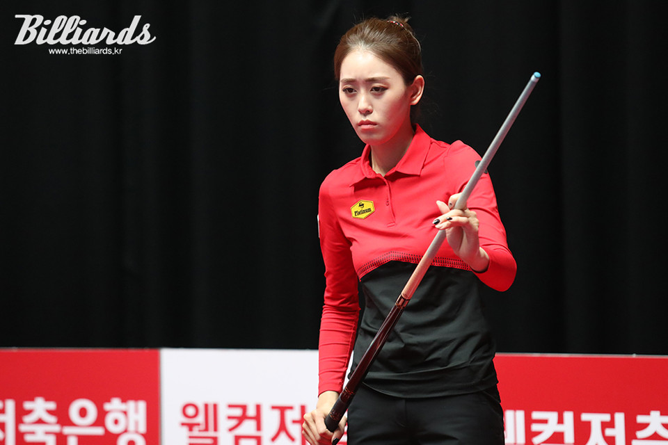 [빌리어즈=김민영 기자] '웰컴저축은행 웰뱅 PBA-LPBA 챔피언십' 준결승전에서 김보미(신한금융투자)와 대결 중인 최지민이 세트스코어 1-2로 밀리며 열세에 놓였다.