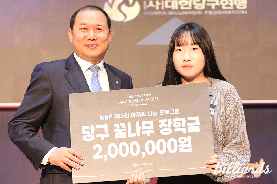 대한당구연맹은 시상식에 앞서 KBF 키다리 아저씨 프로젝트의 일환인 '꿈나무 장학금' 전달식을 열고 캐롬 부문에 3명, 포켓볼 부문에 2명 등 총 5명의 학생 선수에게 각 200만원의 장학금을 전달했다.