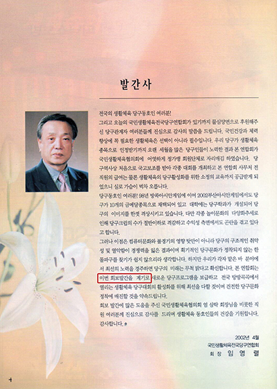 2. <스포츠당구>와 관련된 모든 사항은 협회에서 어떤 도움을 받지 않았다. 전 임영렬 회장과 본인이 개인적으로 발행하기로 대의원총회에서 결의했던 사항이다.