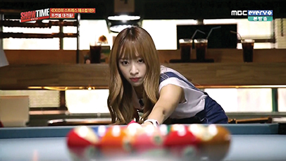 그리고 무엇보다 EXID도 당구장에 가면 짜장면을 시켜먹는다. EXID의 당구여신은 정화. 비록 실력은 솔지에게 밀릴지라도 포즈와 눈빛만큼은 차유람 못지 않다.