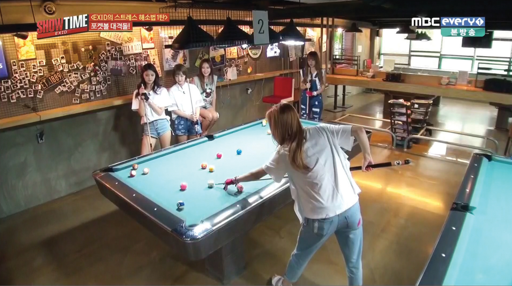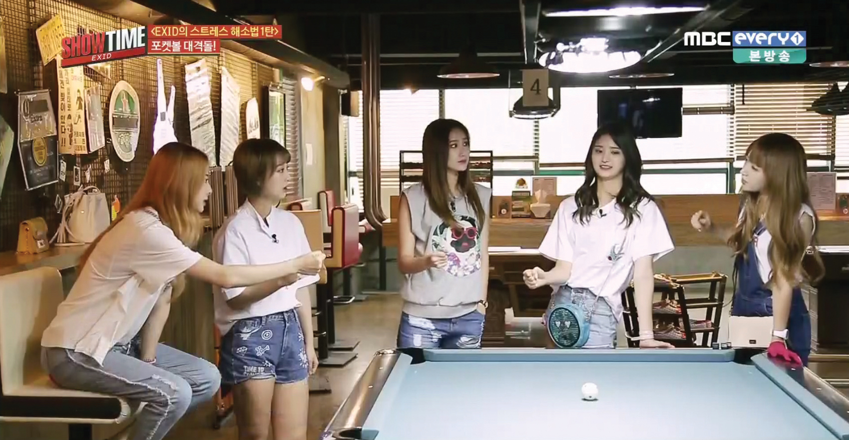 MBC 에브리원 'EXID의 쇼타임'에서 스트레스를 해소하기 위해 뭘 하겠느냐는 질문을 받은 그녀들이 망설임 없이 만장일치로 당구장을 추천했다.