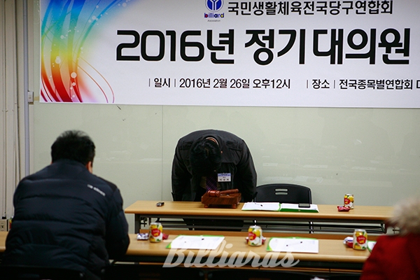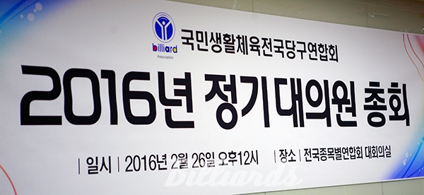 [빌리어즈=김탁 기자] 국민생활체육 전국당구연합회(회장 박종화) ‘2016년도 정기총회’가 지난 26일 12시에 잠실종합운동장 주경기장 내에 있는 종목별 연합회 회의실에서 열렸다.
