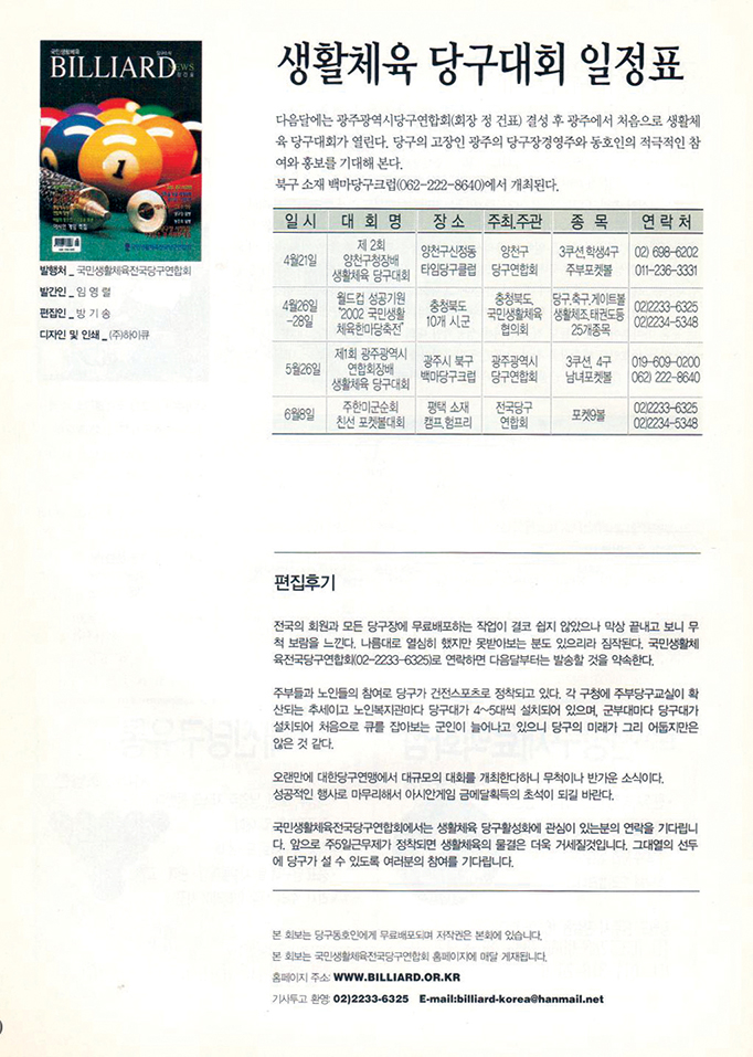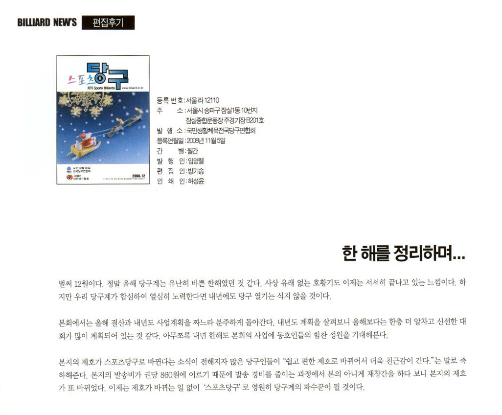 발행처: 국민생활체육 전국당구연합회