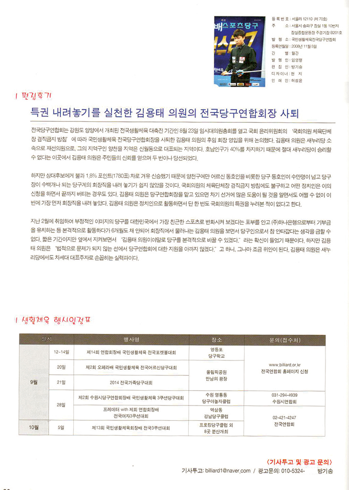 발행처: 국민생활체육 전국당구연합회