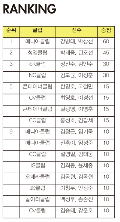 결선 토너먼트에 진출한 매니아클럽은 CC클럽(홍성호, 김갑세)을 2-0, SK클럽(정진수, 김인수)을 1-1에서 승부치기로 꺾고 결승에 올랐다.
