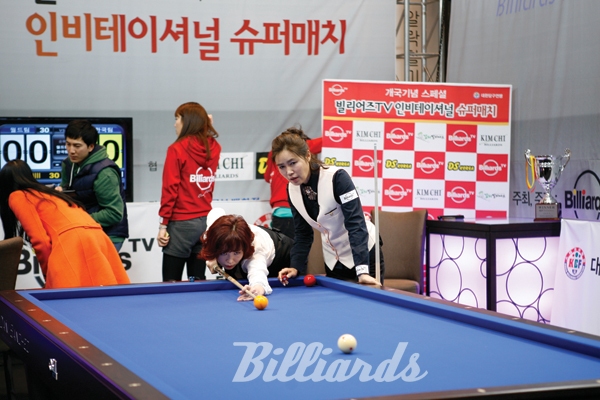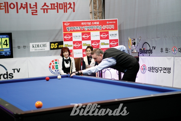 특히 이날 열린 인비테이셔널 슈퍼 매치에서는 한국을 대표하는 3쿠션 선수인 김경률과 가장 촉망받는 주니어 선수인 조명우와 이미래, 그리고 국내 톱 여자 3쿠션 선수 송은주가 쿠드롱과 산체스와 각각 3:3 편을 나눠 대결을 펼쳐 눈길을 끌었다.