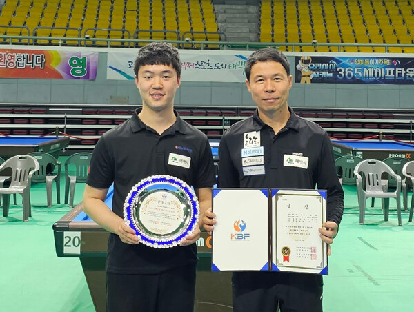 지난 5월 3일 강원도 태백시 고원체육관에서 열린 '2023 태백산배 전국3쿠션당구대회' 첫날 캐롬 3쿠션 복식전에서 허정한-이종훈의 경남 팀이 공동 3위에 올랐다.