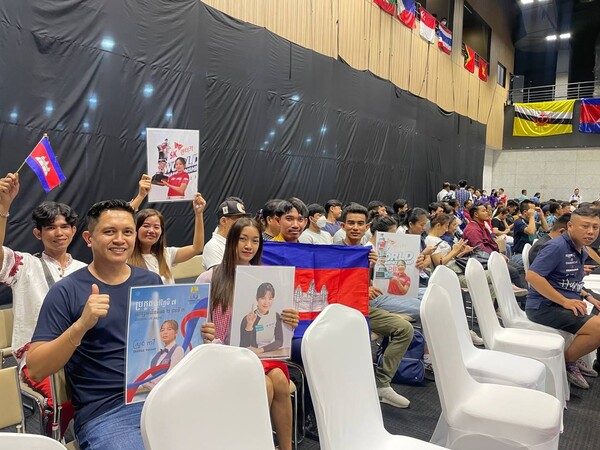 사진은 캄보디아 국기와 스롱의 우승 사진이 담긴 플래카드를 들고 응원전에 나선 캄보디아 국민들.