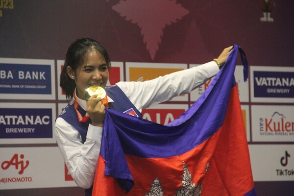 '캄보디아 당구 영웅' 스롱 피아비(33·블루원리조트)가 '제32회 2023 동남아시아게임(32nd SEA GAMES, CAMBODIA 2023)' 여자 3쿠션 종목에서 금메달을 획득했다.