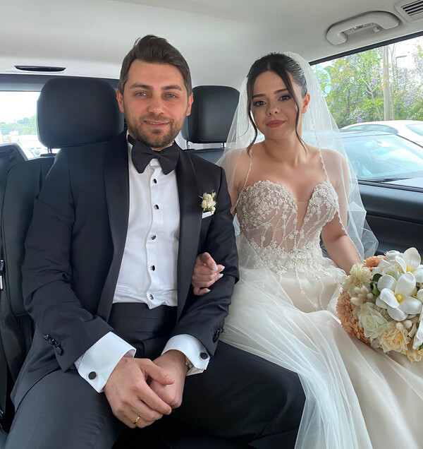 사진은 식장으로 향하는 잔 차팍과 예비 신부 피나르 코세.