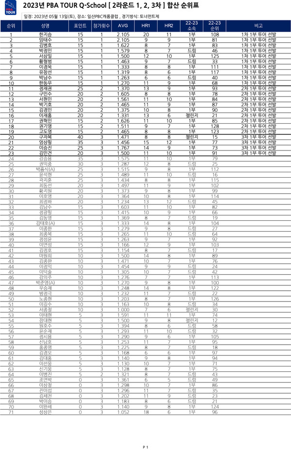 또한, 서현민(웰컴저축은행), 김병호(하나카드), 한지승(웰컴저축은행) 등도 큐스쿨을 통과했다.