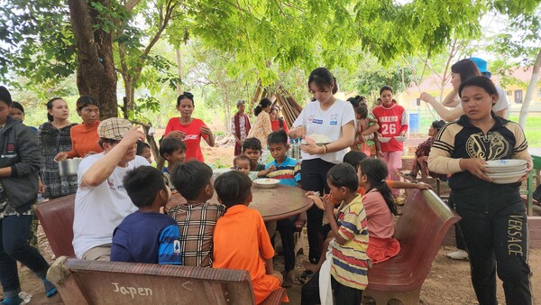 사진은 아이들에게 밥을 나눠주고 있는 스롱.