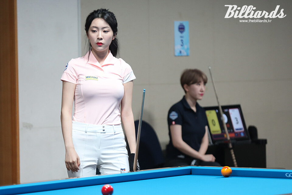 11일 128강전부터 출발한 정수빈은 '경주 블루원리조트 LPBA 챔피언십' 예선 1라운드에서 유미형을 18:11(28이닝)로 꺾고 64강에 올랐다.