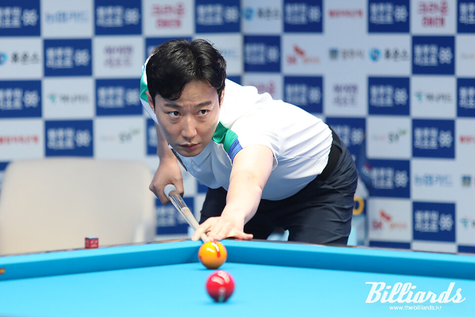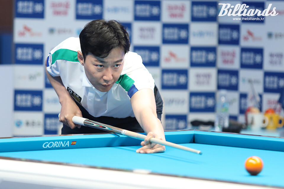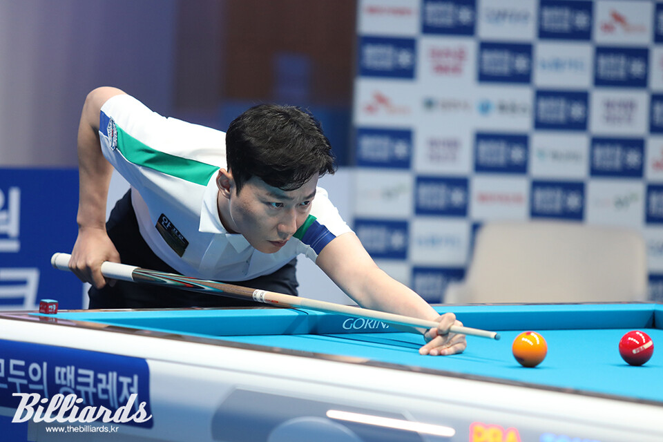 사진의 박한기는 PBA 예선 1라운드 128강전에서 '신입생' 최성원(휴온스)을 세트스코어 3-1로 꺾고 64강에 올랐다.