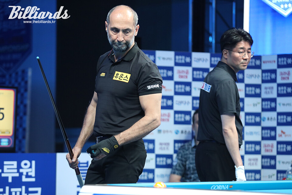 오늘(18일) 열린 PBA 8강전에서 'PBA 강호' 스페인의 다비드 사파타(블루원리조트)와 '신입생' 세미 사이그너(튀르키예, 휴온스)가 준결승 진출을 놓고 맞대결을 벌였다.