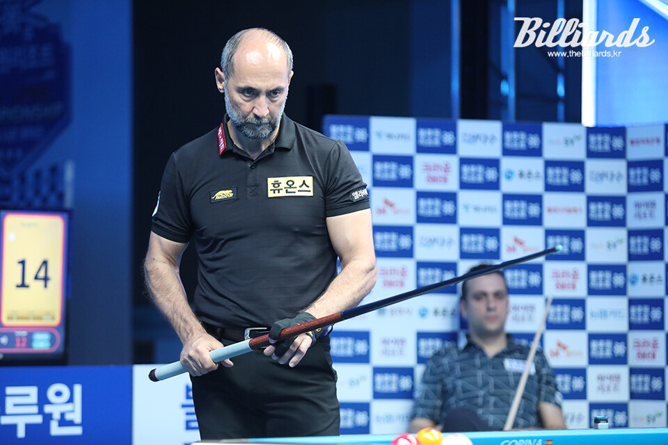 오늘(18일) 열린 PBA 8강전에서 'PBA 강호' 스페인의 다비드 사파타(블루원리조트)와 '신입생' 세미 사이그너(튀르키예, 휴온스)가 준결승 진출을 놓고 맞대결을 벌였다.