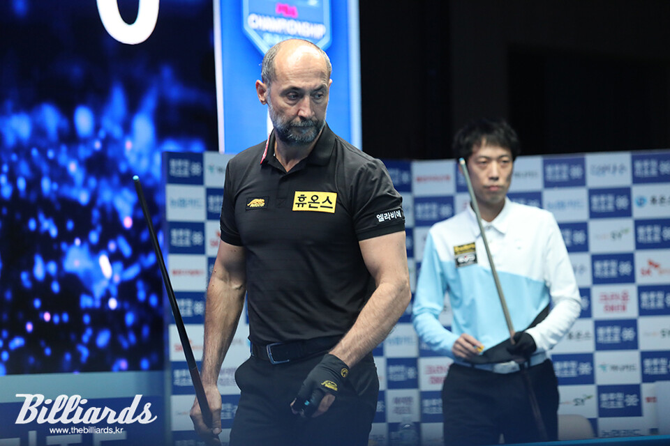 오늘(19일) 열린 남자부 PBA 투어 준결승전 두 번째 경기로 튀르키예의 세미 사이그너(휴온스)와 박인수의 대결일 펼쳐졌다.