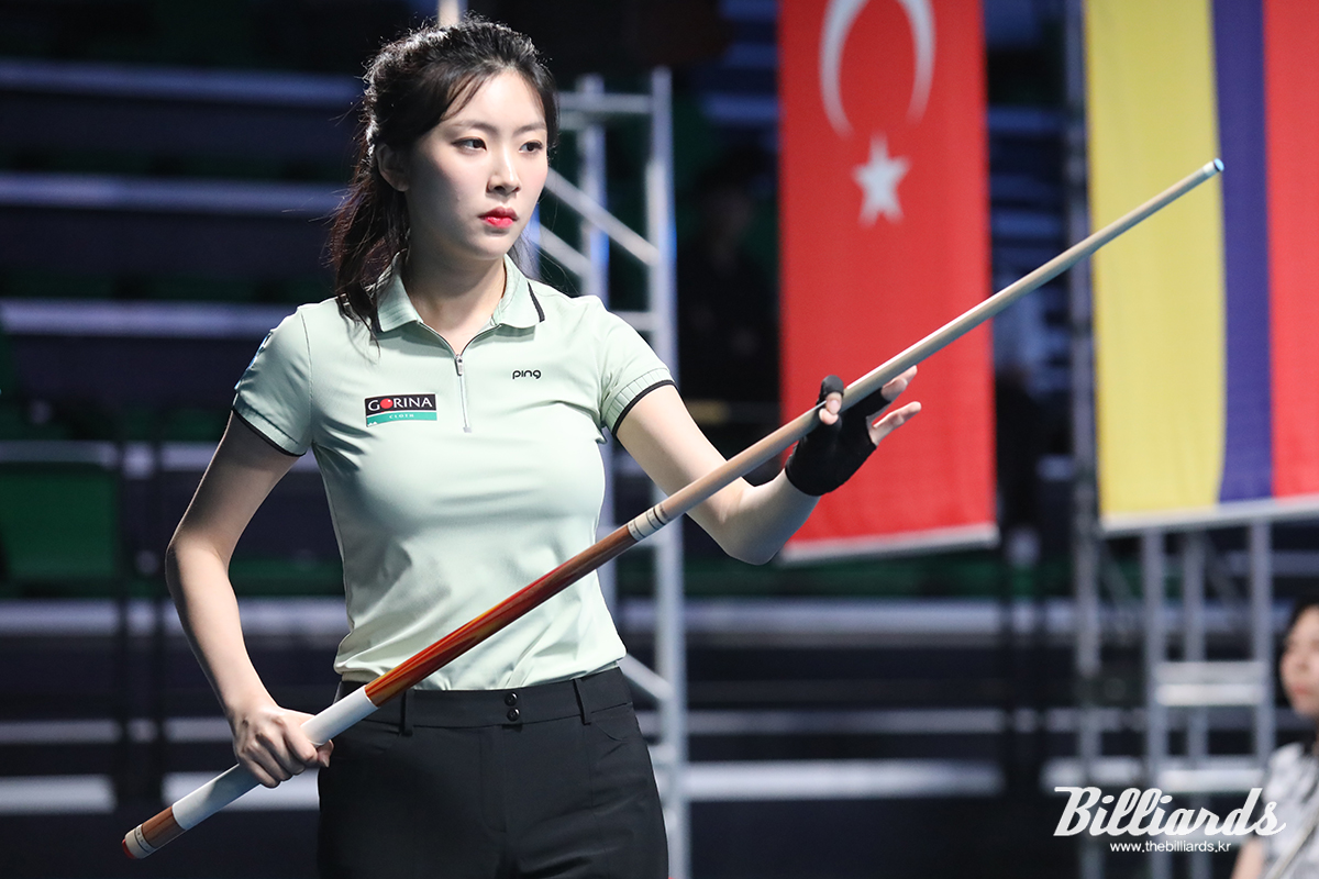 오늘(2일) 예선 1라운드 대결에서 이윤애(35)와 맞대결을 벌인 정수빈은 28이닝 동안 18점을 획득하며 18:9로 이윤애를 꺾고 예선 2라운드에 진출했다.