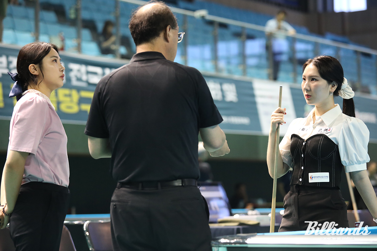오늘(7일) 전북 남원시 춘향골체육관에서 열린 '2023 남원전국당구선수권대회' 포켓10볼 여자부 준결승전에서 진혜주와 박은지가 맞붙었다.