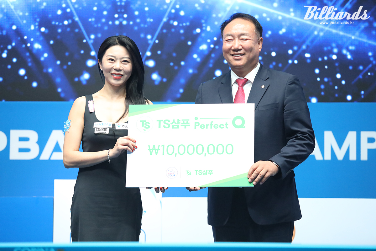 특별 상금 1000만원이 주어지는 ‘TS샴푸 퍼펙트큐’상은 매 대회(PBA-LPBA) 최초로 세트제 경기에서 상대 점수와 이닝에 관계없이 한 큐에 세트 모든 득점(PBA 15점, LPBA 11점, 마지막 세트도 포함)을 기록하면 주어지는 특별상이다.