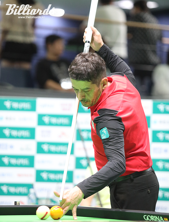 튀르키예의 무랏 나시 초클루(하나카드)가 오늘(22일) 열린 프로당구 시즌 3차전 '하나카드 PBA 챔피언십' 첫 경기 128강전에서 오성욱(NH농협카드)과 대결했다.