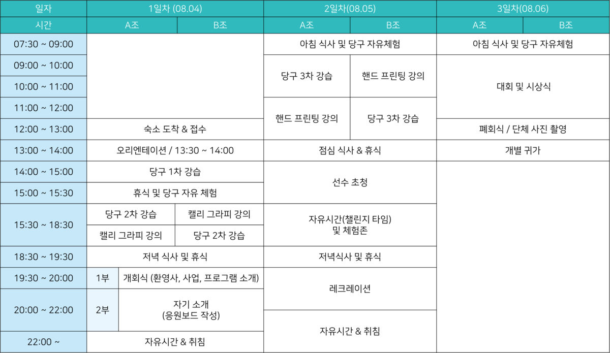 행사 기간에는 홍진표, 유승우, 진혜주, 김보건, 김주영, 이범열, 장윤혜 선수 등이 지도자로 참가해 3일 동안 당구 강습을 진행한다.
