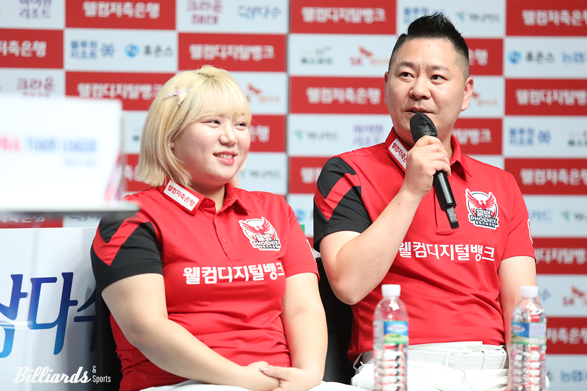 사진은 PBA 팀리그 미디어데이에 참석한 김예은과 서현민.