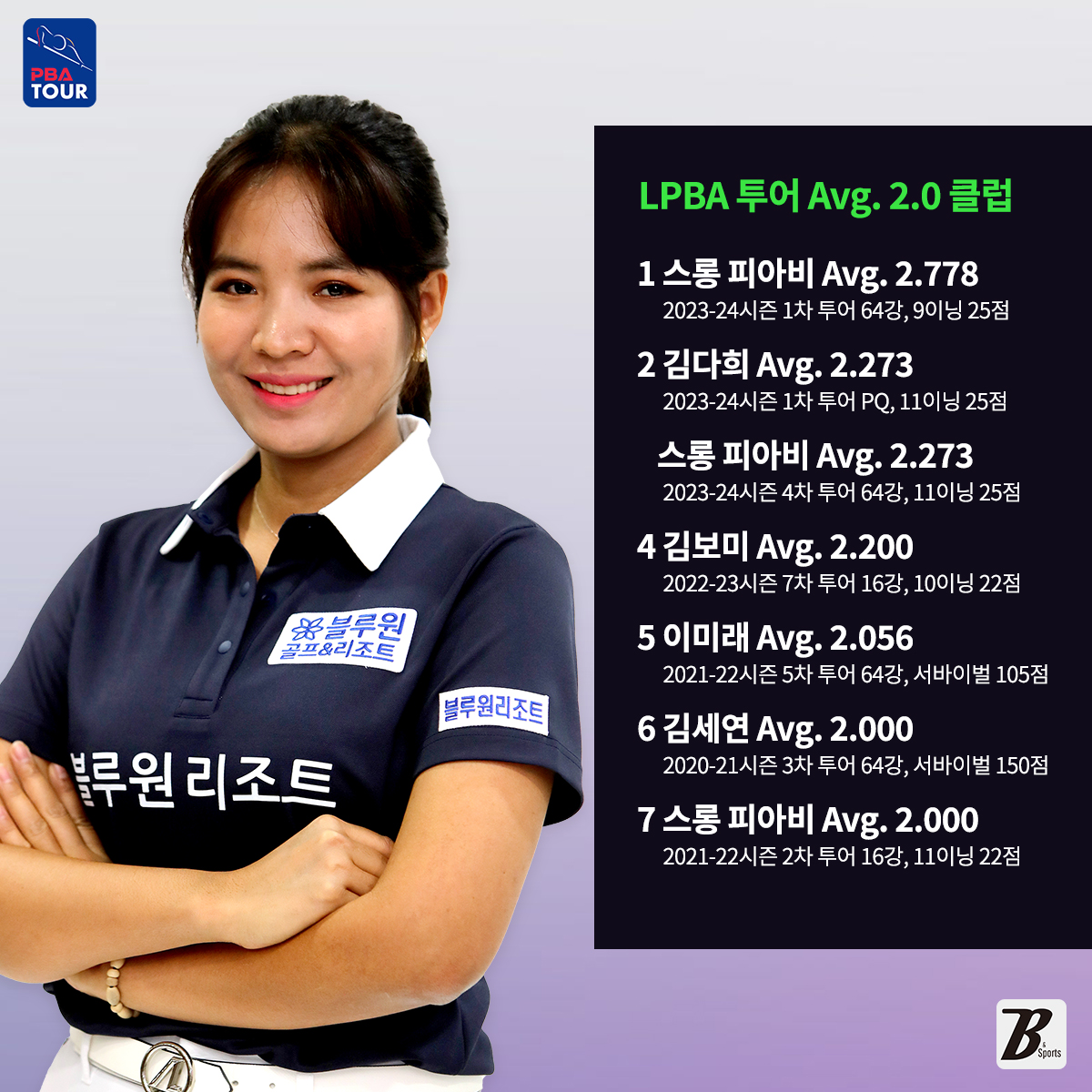 애버리지 2.273, 7이닝 연속 다득점. 'LPBA 챔피언' 스롱 피아비(블루원리조트)가 이번 시즌에만 두 번째 2점대 애버리지로 투어를 시작했다.