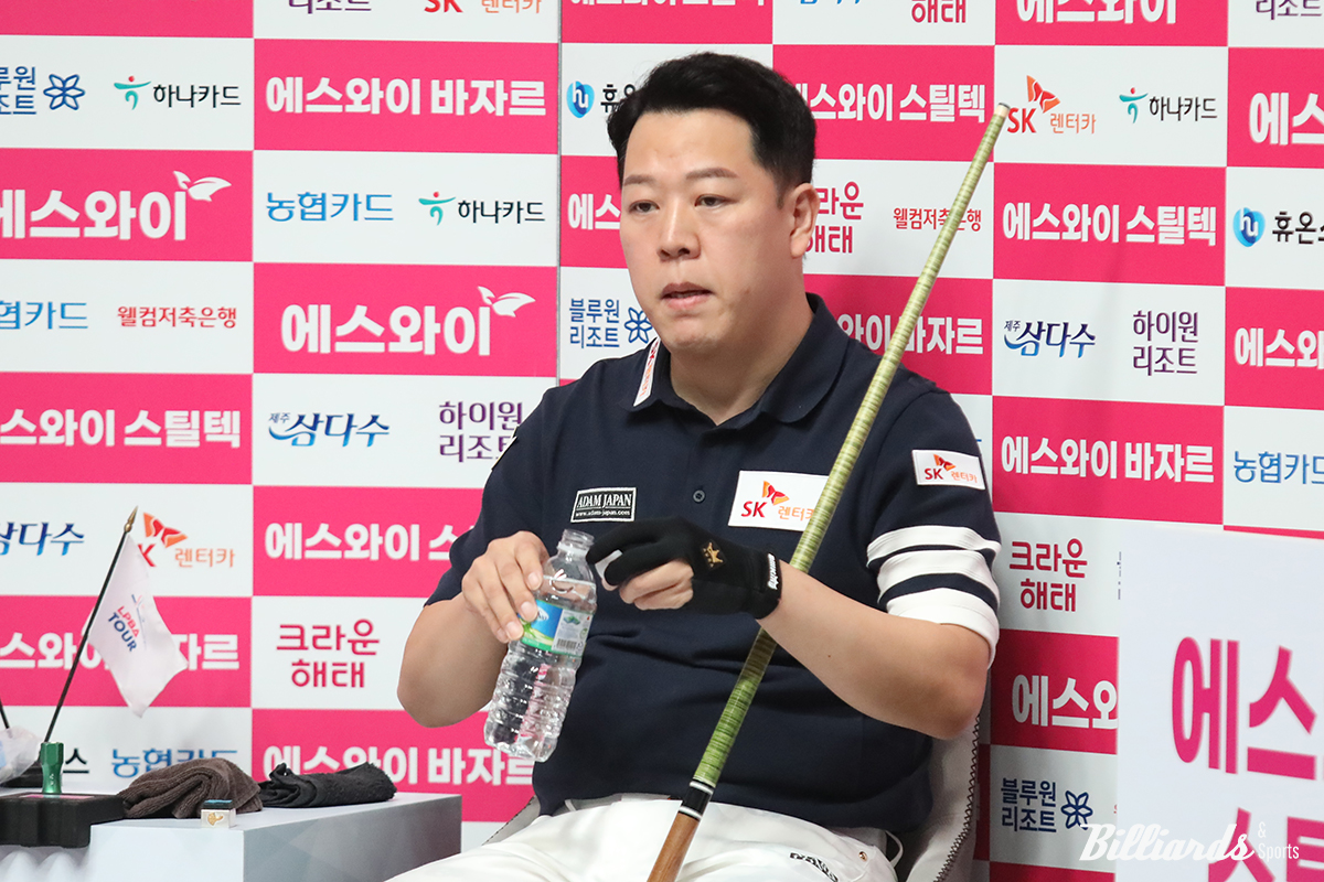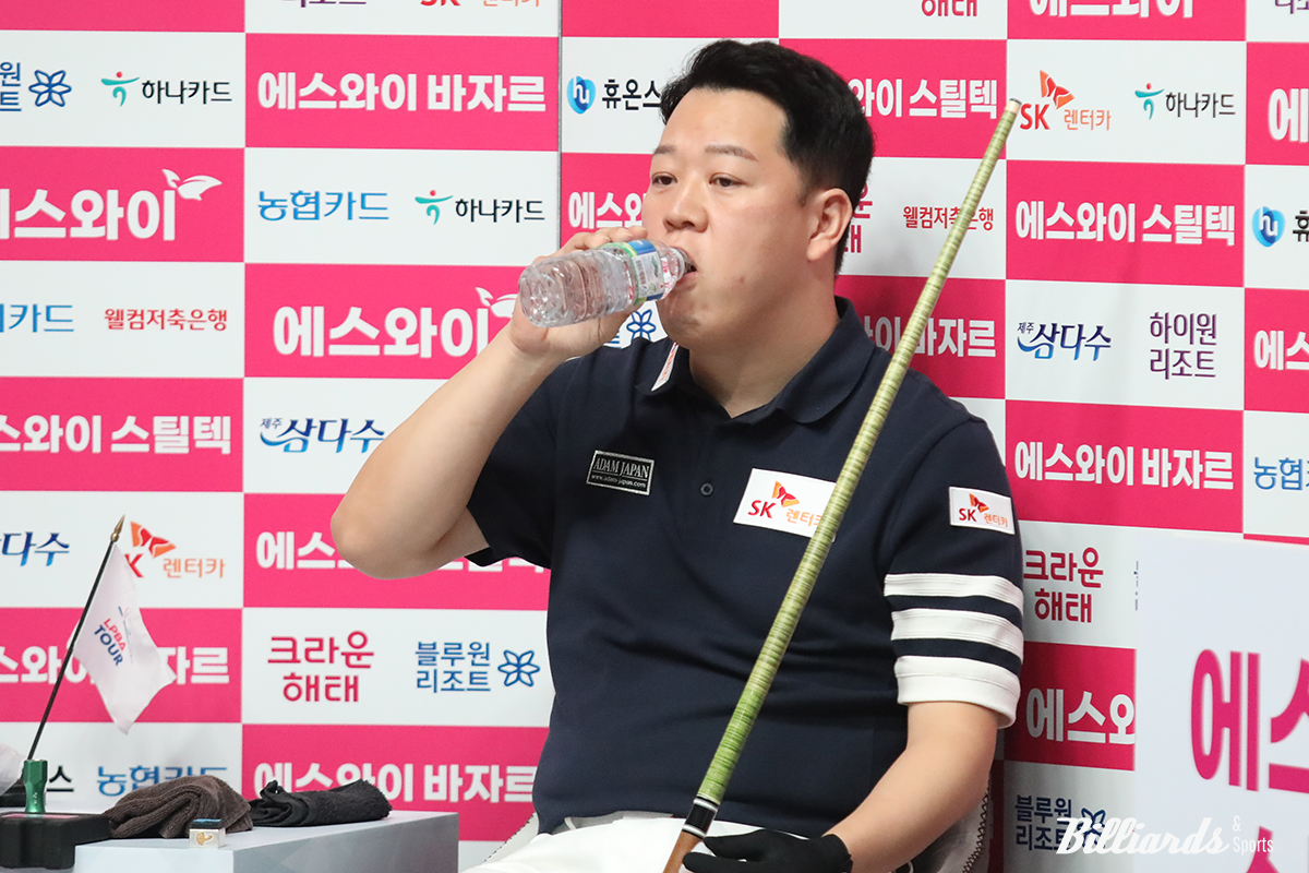 사진은 박기호와의 대결 중인 강동궁이 긴장을 풀기 위해 물을 마시고 있다.