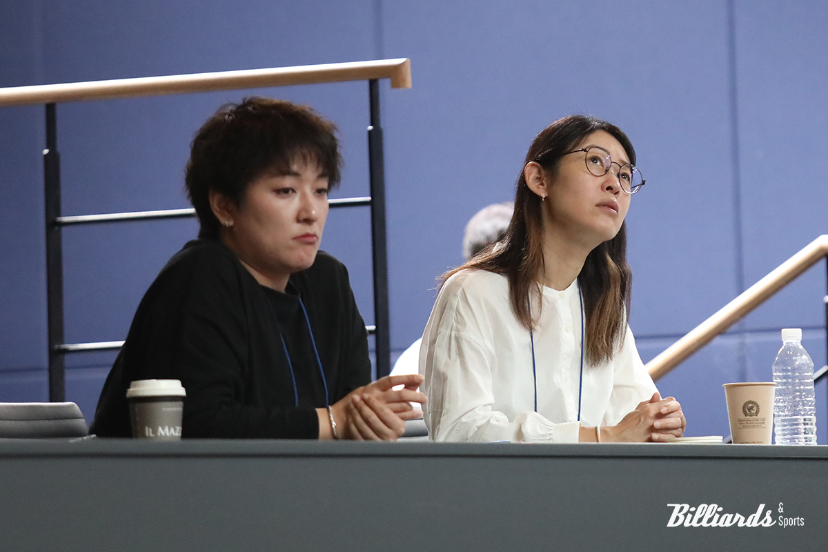 사진은 모리를 응원하러 대회장을 찾은 히다 오리에(SK렌터카)와 히가시우치 나츠미(하이원리조트). 히다와 히가시우치는 여자부 LPBA 투어에서 우승을 차지한 바 있다.