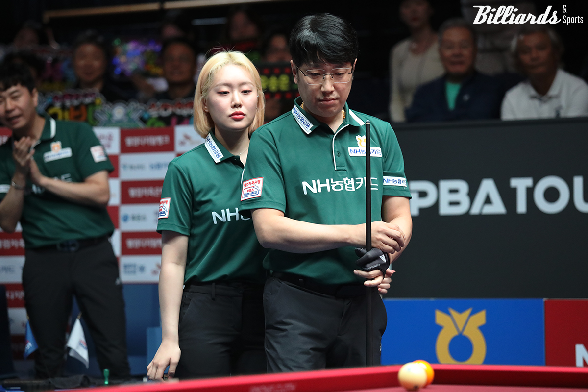 NH농협카드는 2세트 여자복식에서 김민아가 4점, 1점, 3점 등 혼자 8점을 득점하는 활약에 힘입어 5이닝 만에 9:1로 승리를 거뒀다. 3세트에서는 조재호와 크라운해태 오태준의 세트포인트 접전이 벌어졌다. 오태준이 2이닝 6득점과 3이닝 5득점 등 11점을 득점하면서 일찌감치 승기를 잡았다.