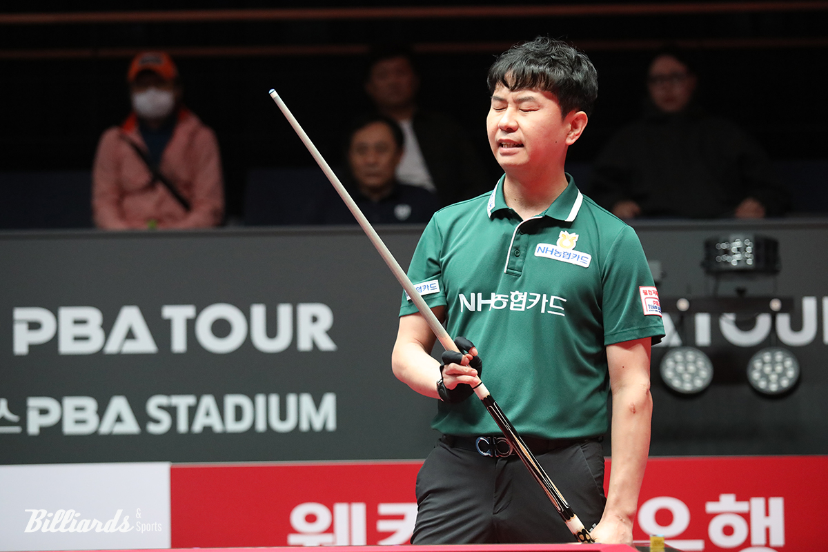 "이 친구 요즘 당구를 너무 잘 친다"고 조재호의 폭풍 칭찬을 받은 김현우는 이날도 조재호와 1세트 남자 복식에 출전해 크라운해태의 김재근-김태관을 11:7(6이닝)로 물리치고 세트 승리를 차지했다.